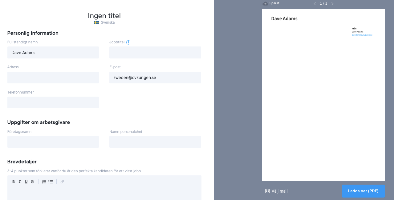 Så här skapar du personligt brev på cvkungen.se