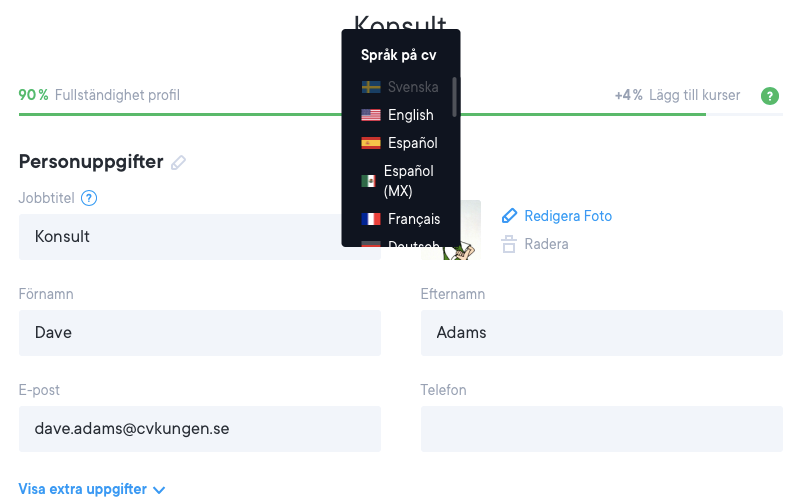 Du kan ändra språket på ditt cv i två snabba steg med den nya versionen av vår cv-redigerare.