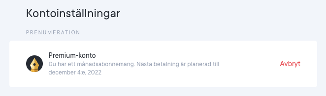 När du har bekräftat din annullering får du premiumåtkomst i 30 dagar från din senaste månadsbetalning eller 7 dagar från din senaste testbetalning. När ditt premium abonnemang upphör är ditt konto nedgraderat till gratisversionen.