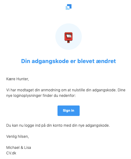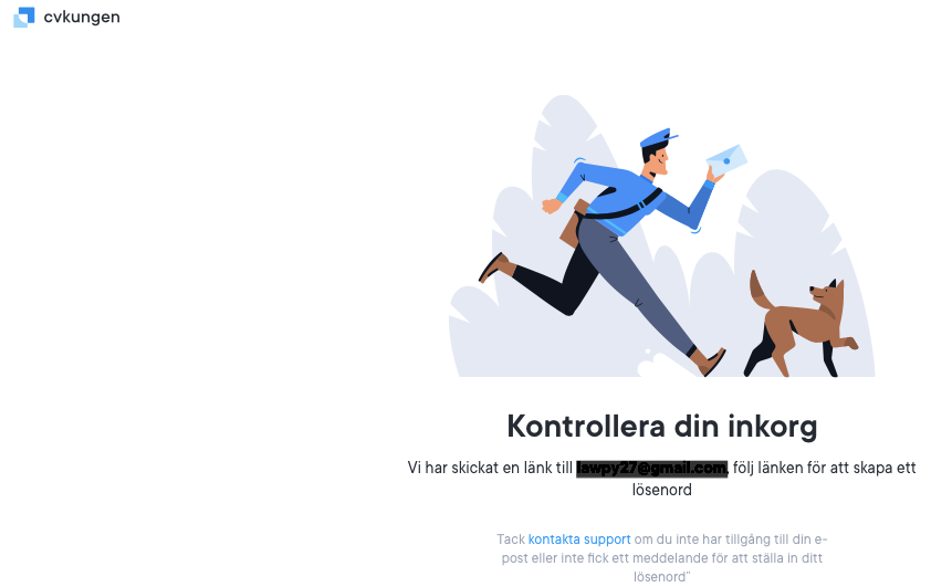 Om din e-postadress fungerar, men du inte får e-postadressen med den magiska länken, kontrollera din skräppost eller sök i din inkorg efter CVkungen.se.